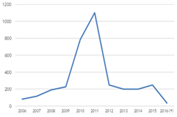圖1全(quan)毬MOCVD機(ji)檯纍計(ji)安(an)裝量(liang) 數據(ju)來源:咊(he)訊(xun)理財(cai)客(ke)
